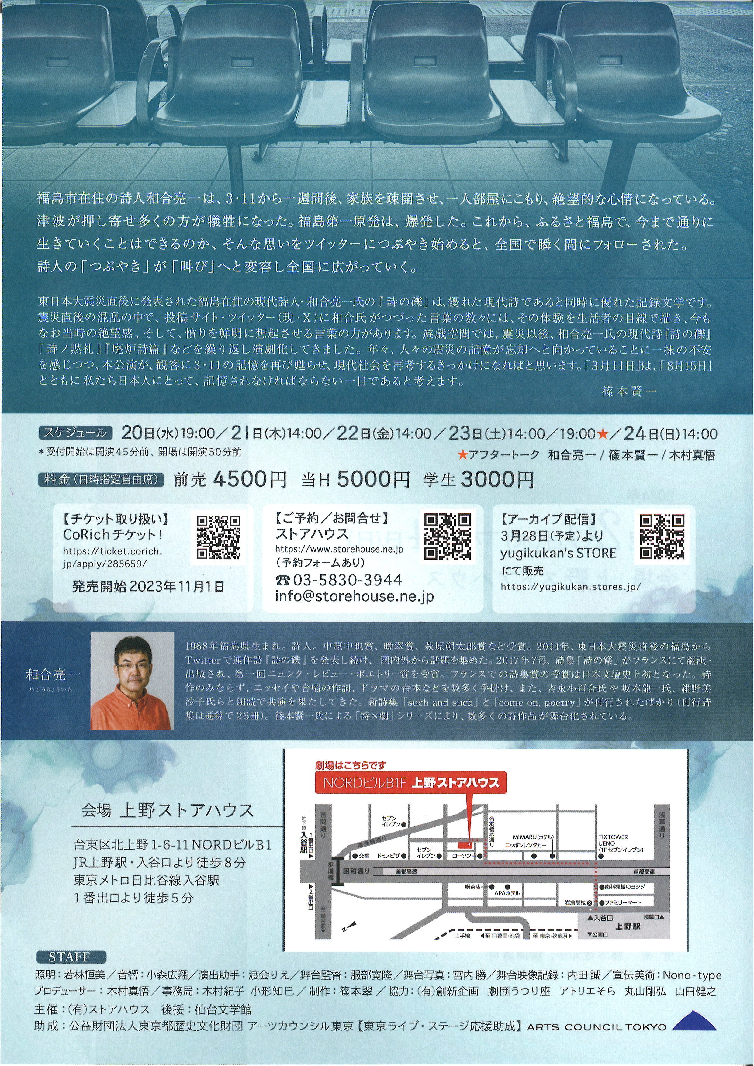 照明/若林恒美 音響/小森広翔 演出助手/渡会りえ 舞台監督/服部寛隆 舞台写真/宮内勝
