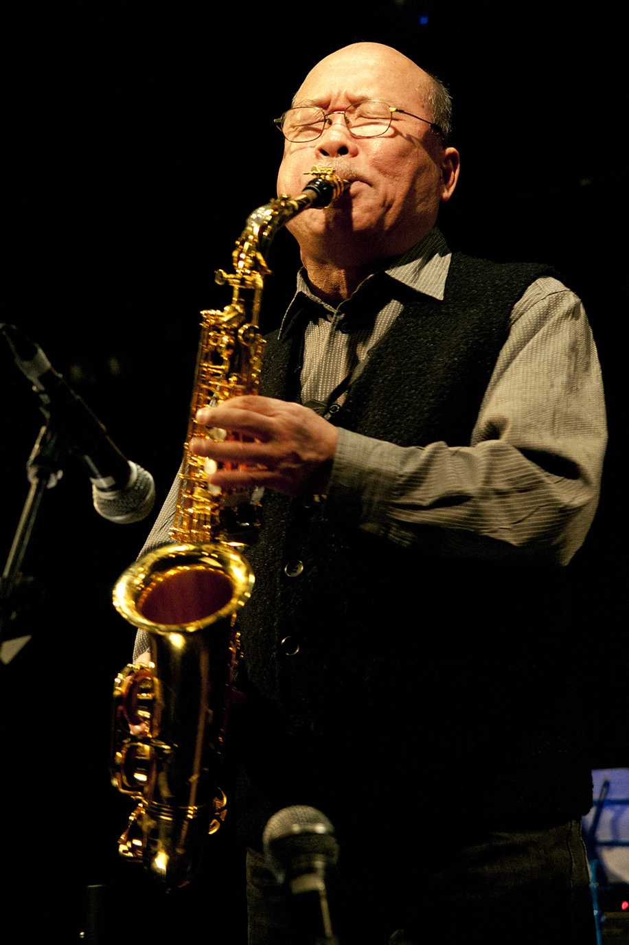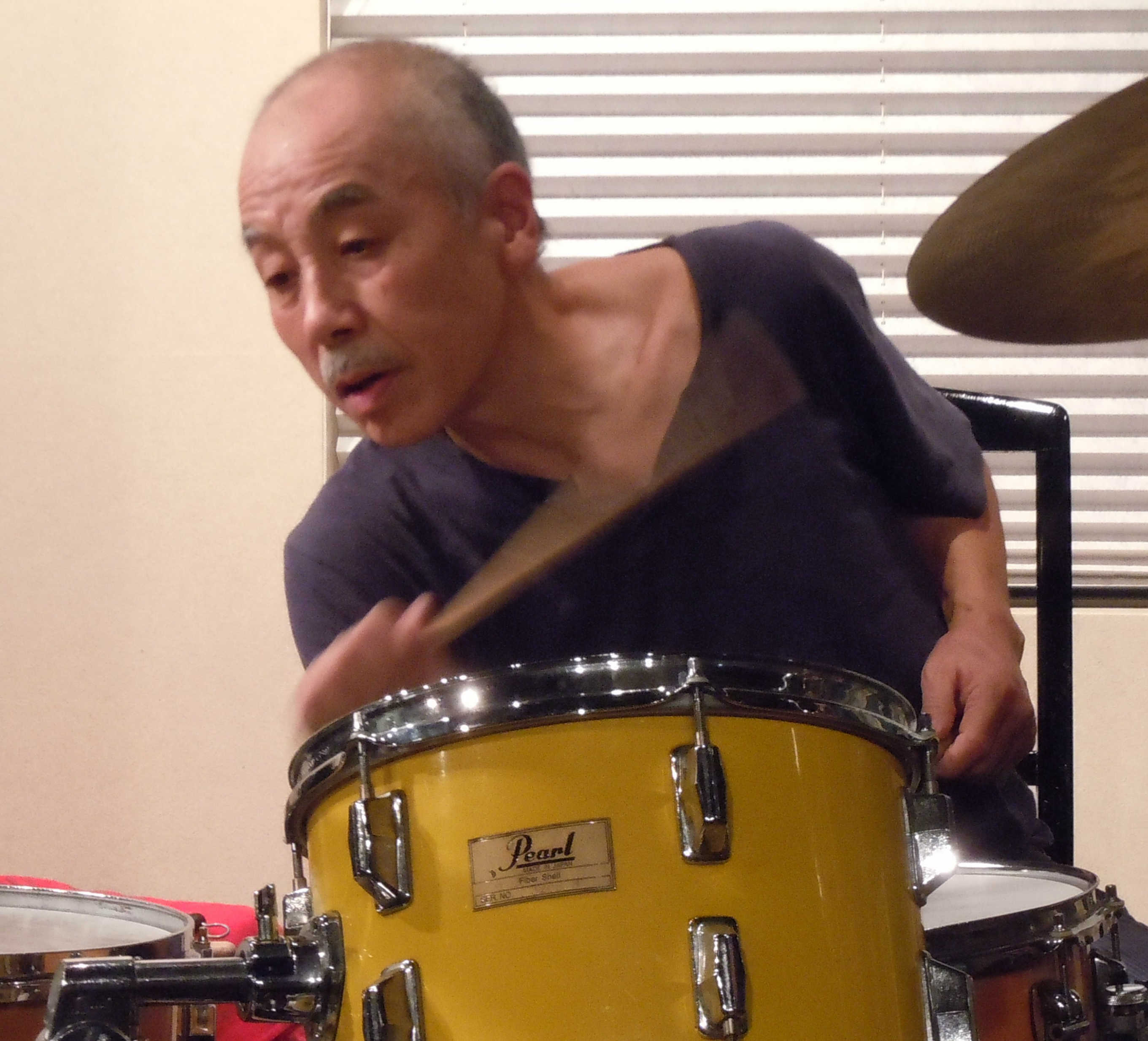 1943年、東京生まれ。青山学院大学在学時の63年富樫雅彦に師事、67年サムライで欧州ツアー。69年、吉沢元治3、高柳昌行ニュー・ディレクションに参加。その後、高木・豊住ディオで人気を博す。71年シカゴAACMに参加、ジョセフ・ジャーマンとのディオなど様々なユニットやワークショップに参加。72年渡仏し、A・ショーター、B・フュー、加古隆などと共演、A・ブラクストンのCreative Music Orchestra等で活動。75年帰国、富樫雅彦「Spiritual Nature」に参加。そのほか、阿部薫、小杉武久、D・ベイリー、H・ベニンク、B・フィリップス、P・ラザフォード、J・ラッセル等と共演。またレオ・スミス、ペーター・ブロッツマン、ミッシャ・メンゲルベルク等を招聘し歴史的作品を残す。現在も世界をまたにかけて活躍。